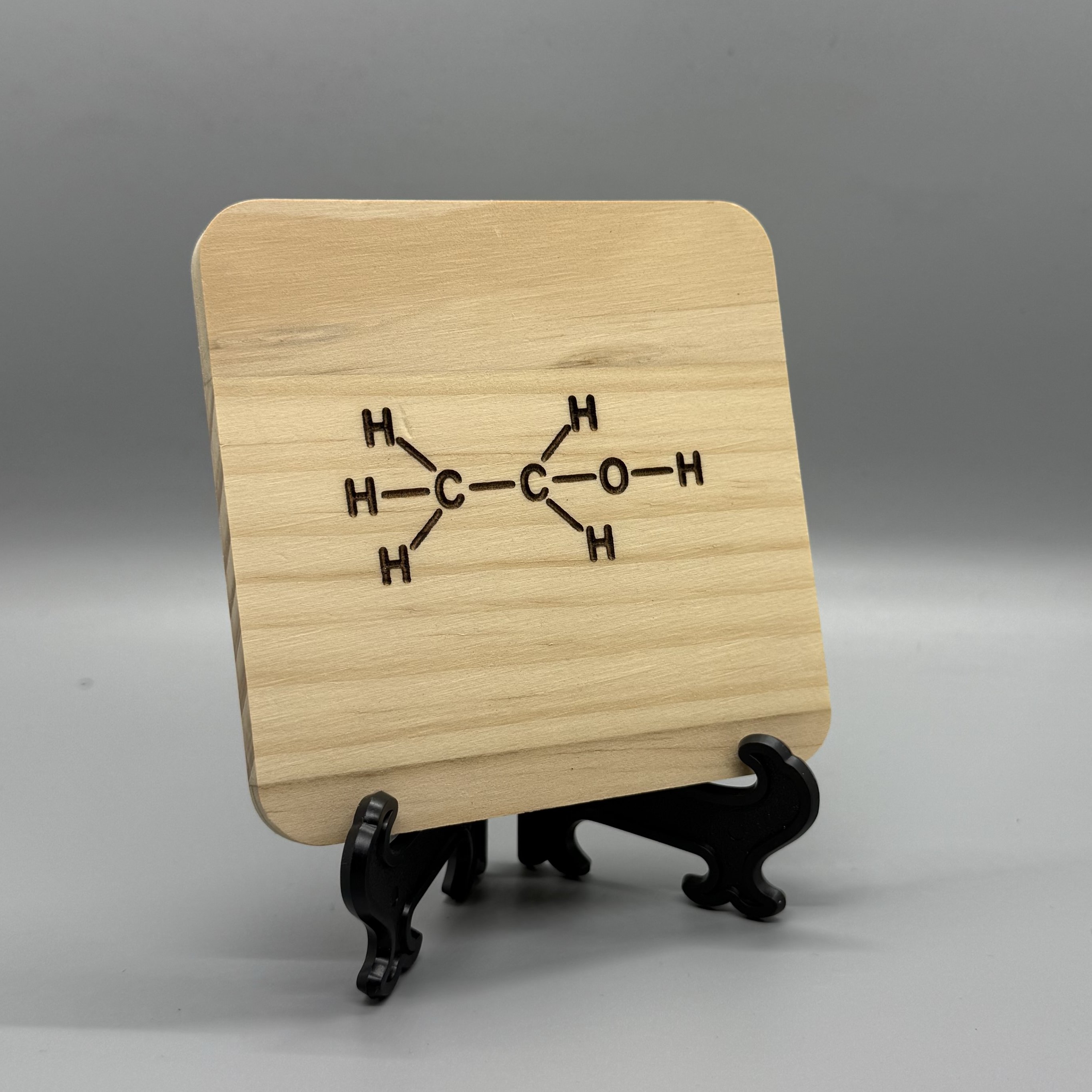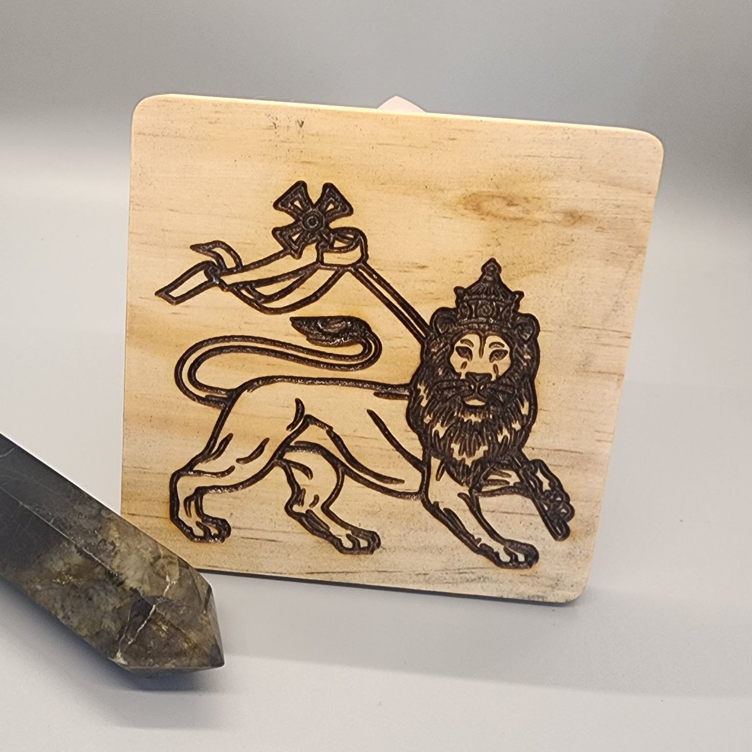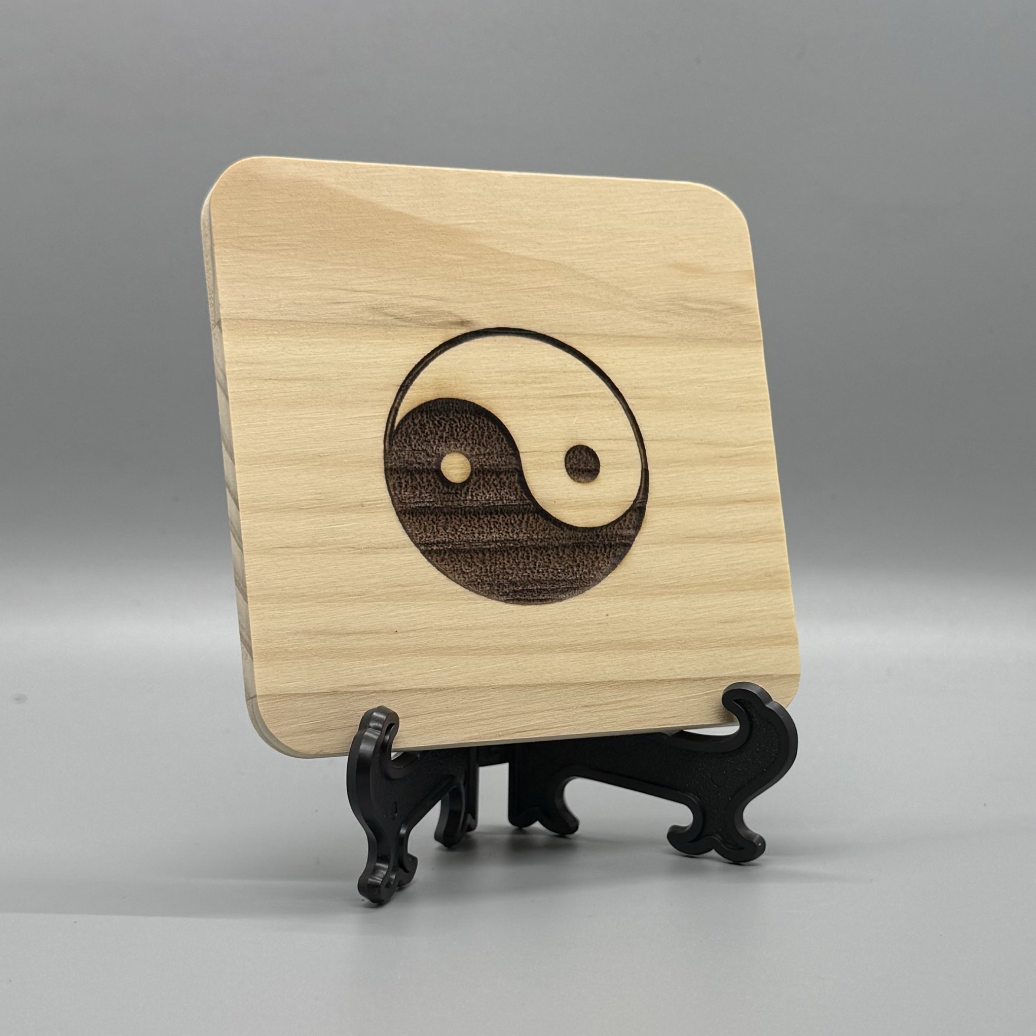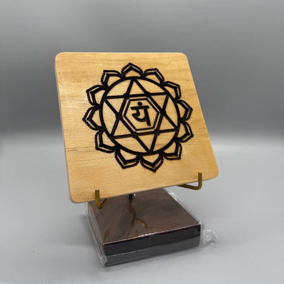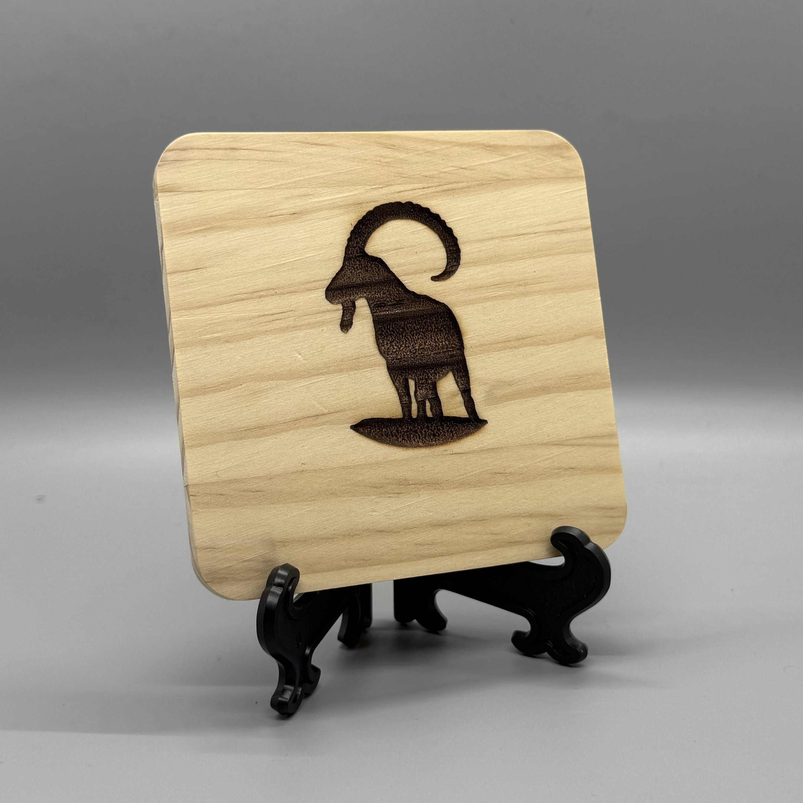 'Do not touch' in braille engraved on a wooden square. Name on top along side 'Property of'.