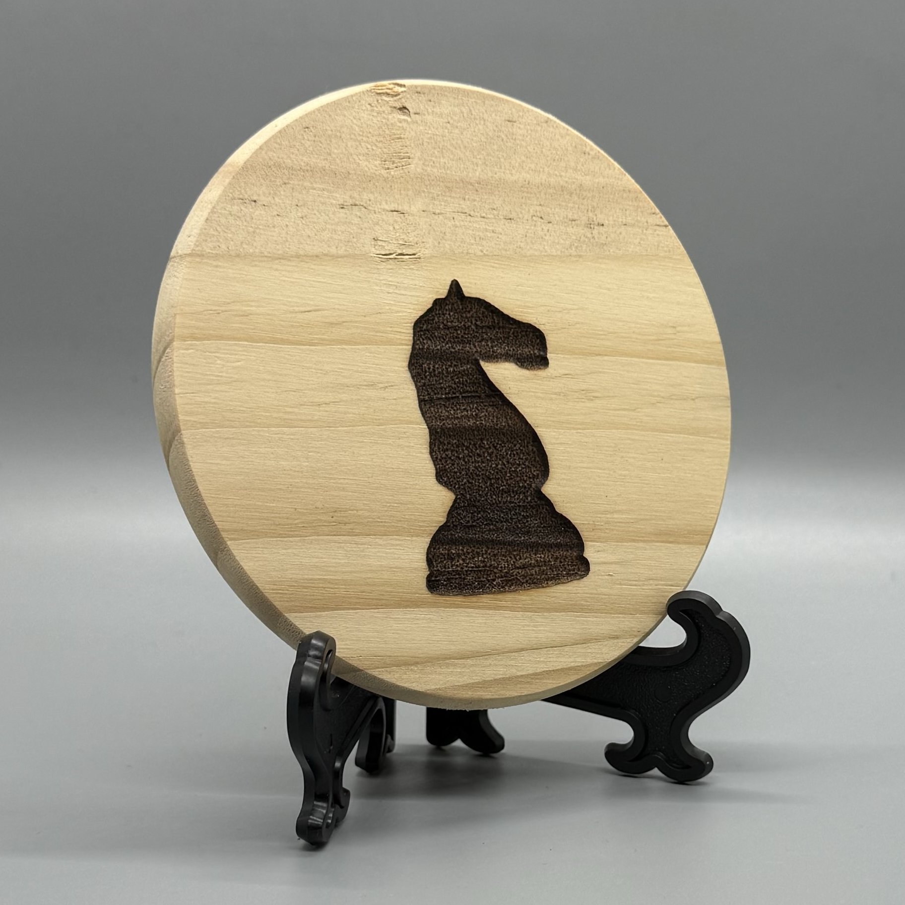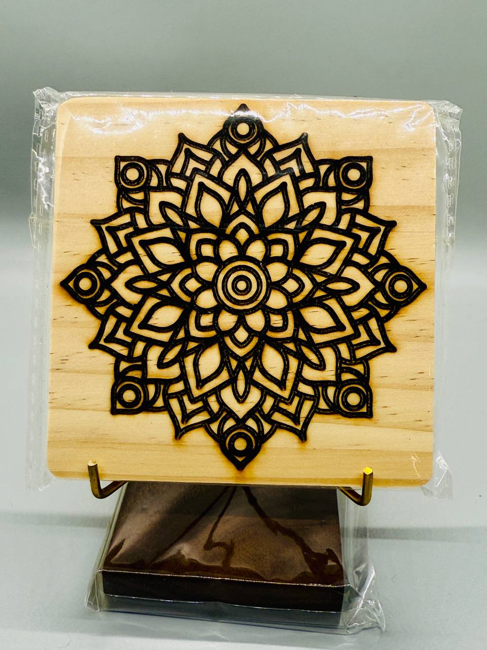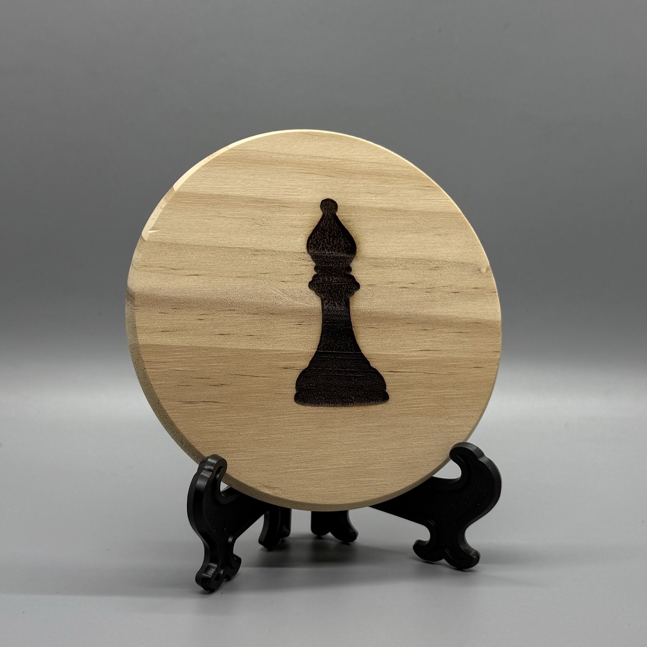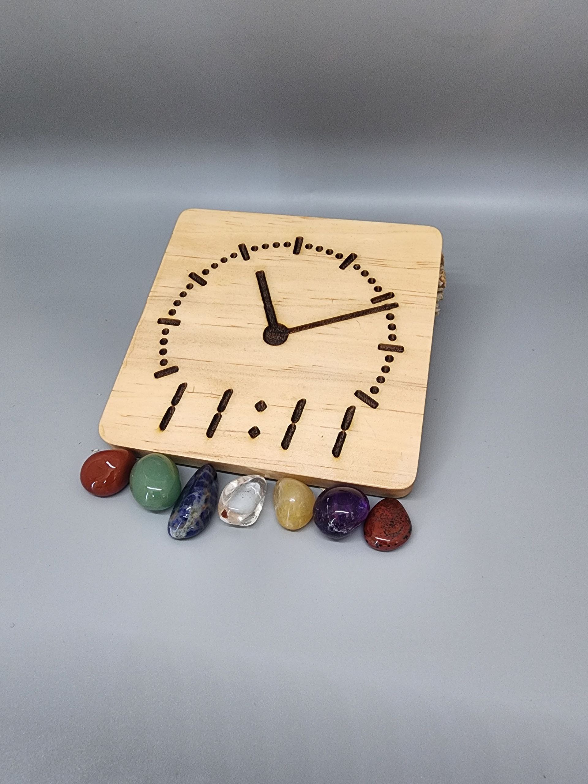 'Do not touch' in braille engraved on a wooden square. Name on top along side 'Property of'.