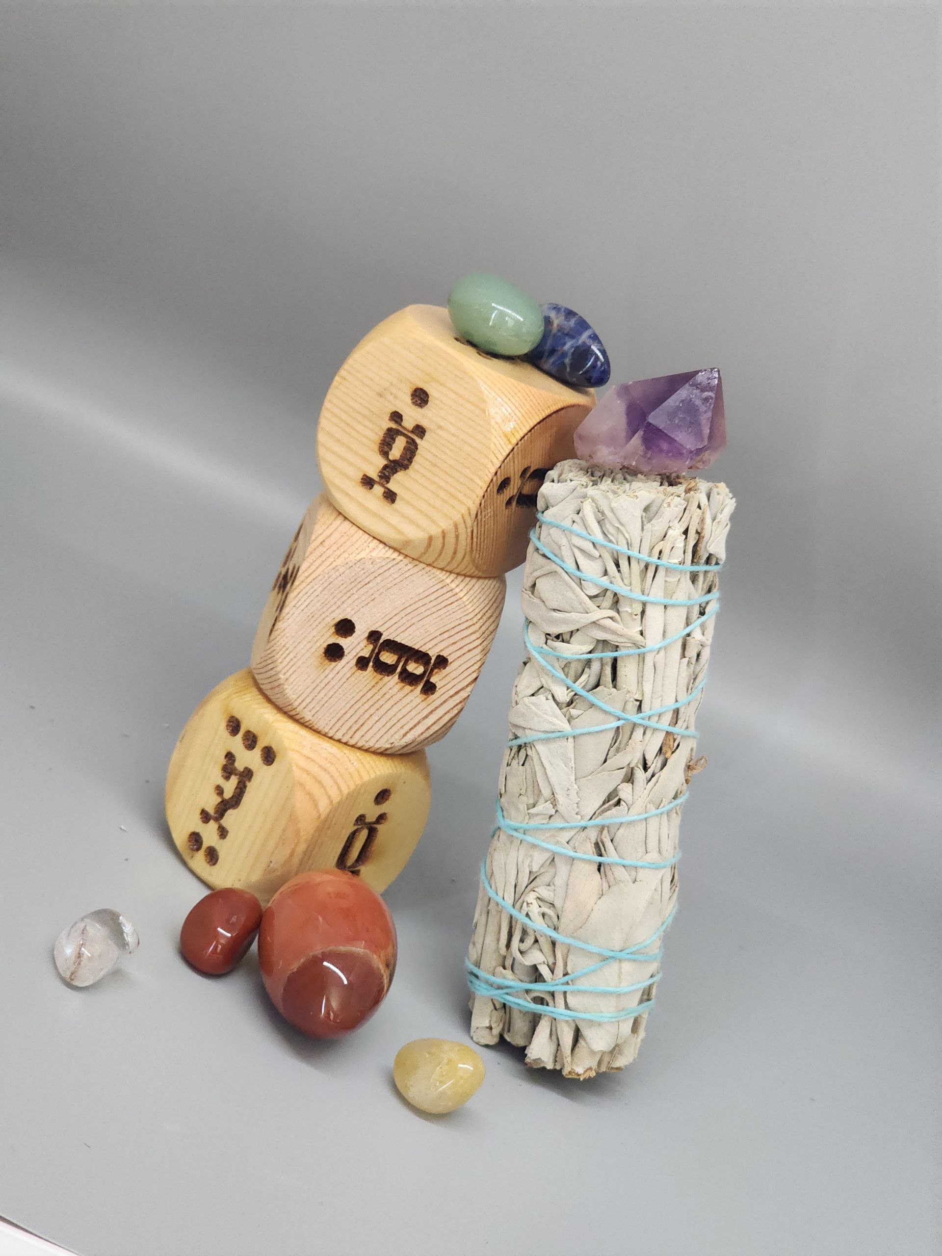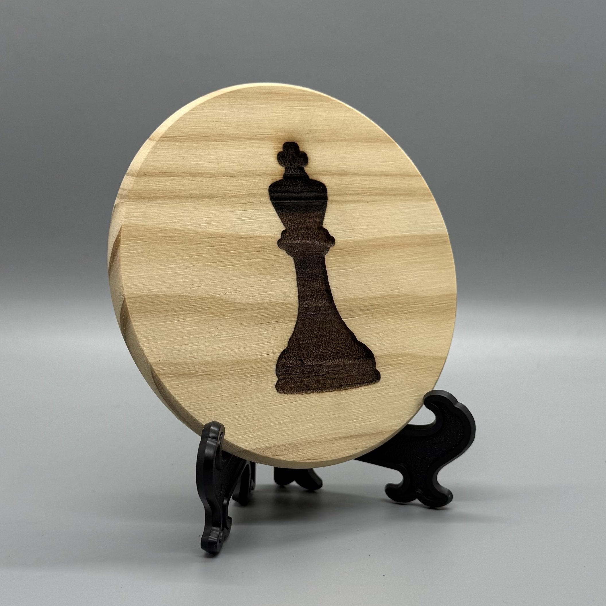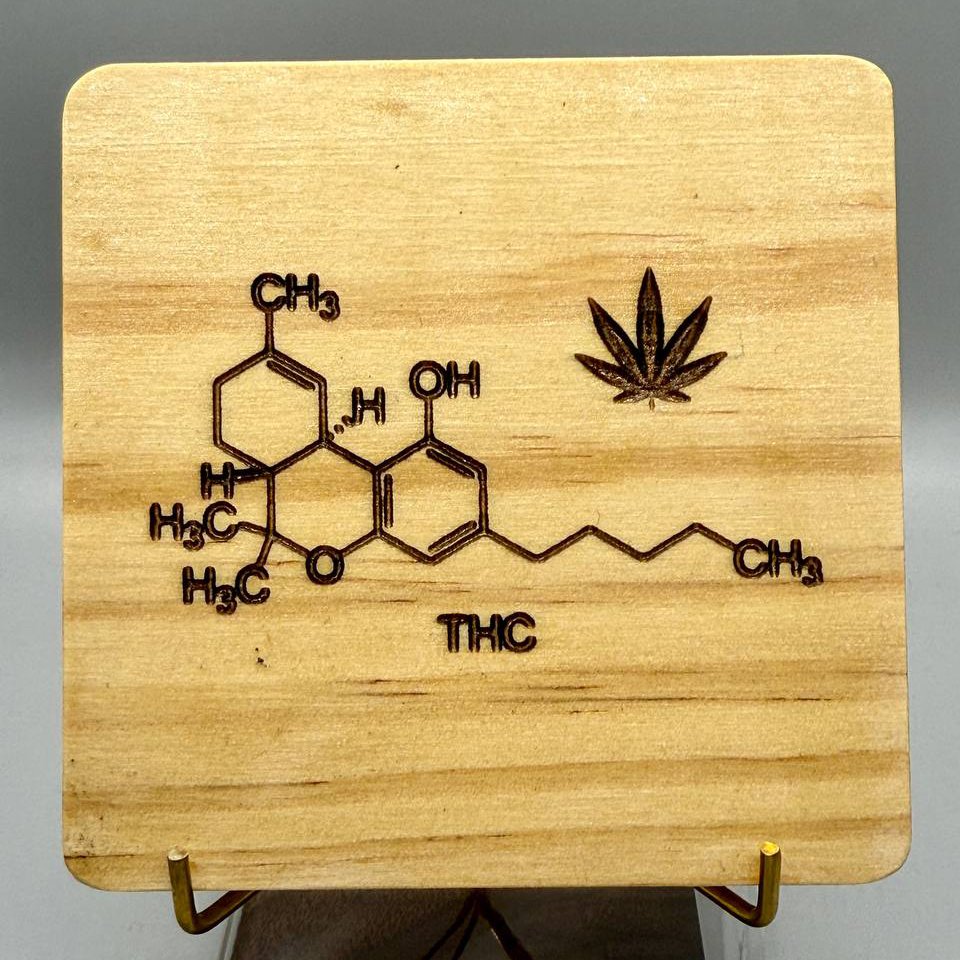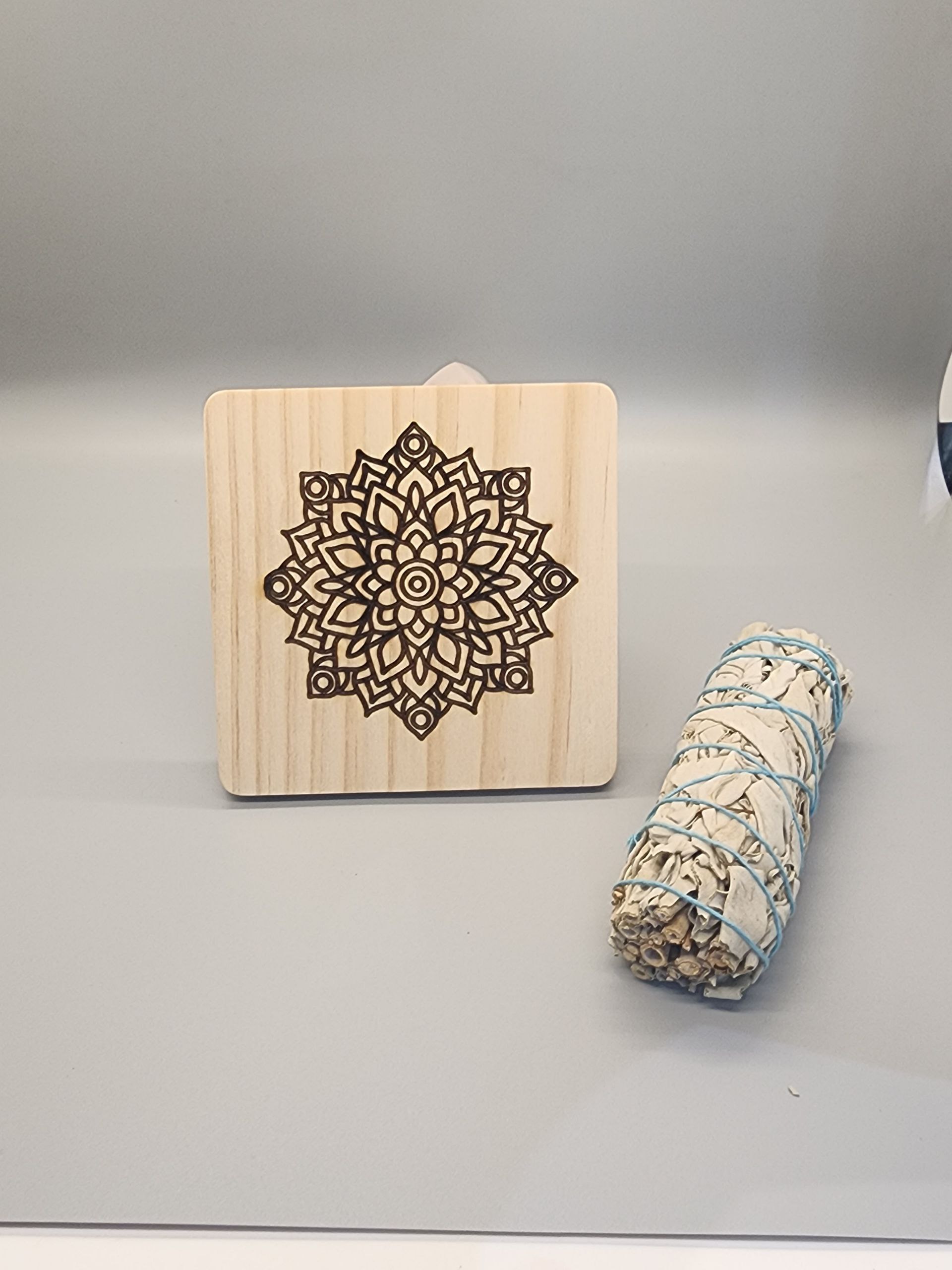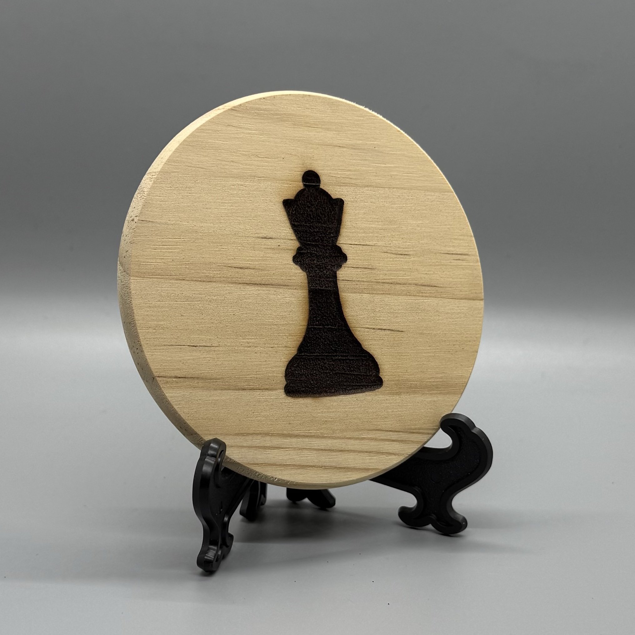 'Do not touch' in braille engraved on a wooden square. Name on top along side 'Property of'.